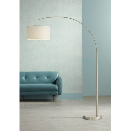 360 Lighting Modern Arc Floor Lamp Brushed Steel Off White Linen