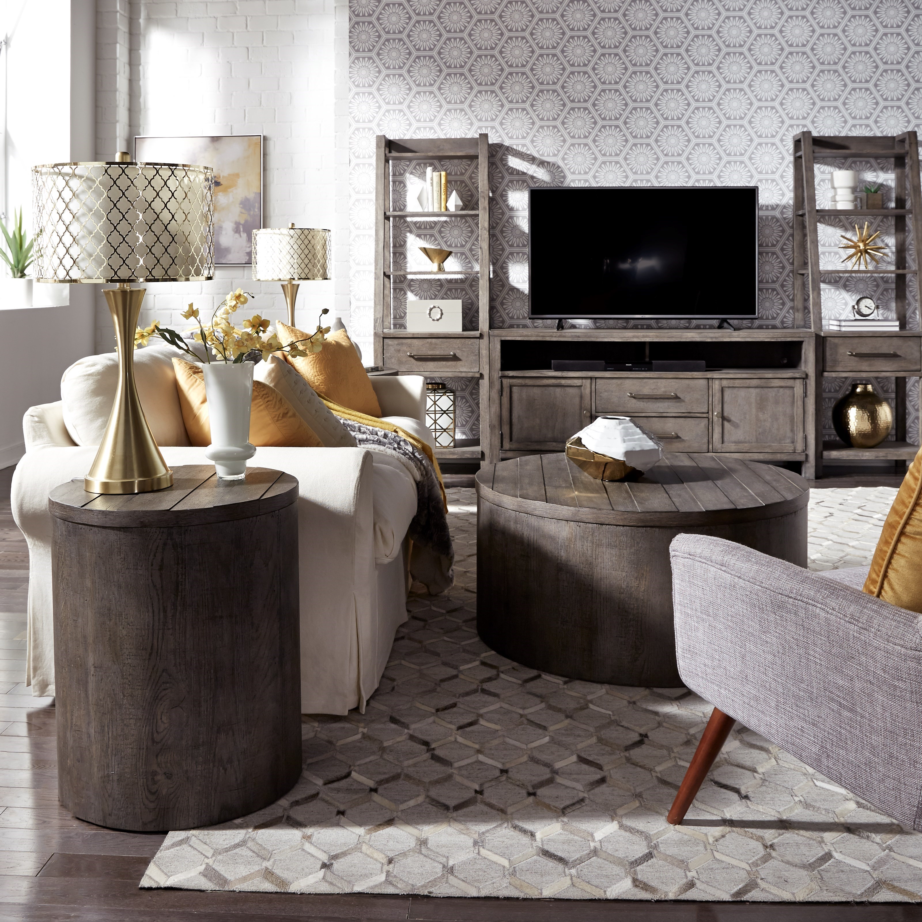 Liberty Furniture Modern Farmhouse Contemporary Round Drum End
