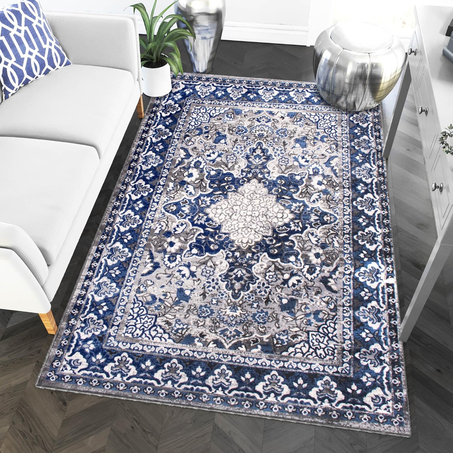 Large Living Room Rug 9x12 Feet Destressed Area Rug Rectangle Blue