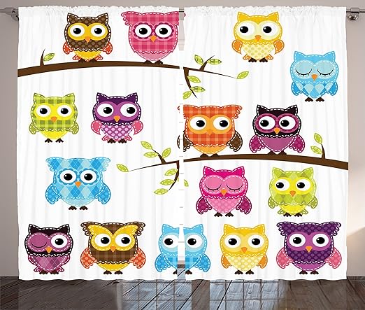 Amazon Com Lunarable Owls Curtains Owls On Tree Branches Night