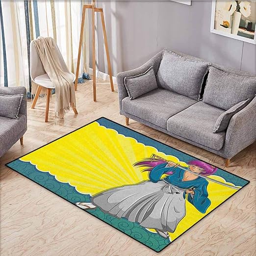 Amazon Com Living Room Area Rug Anime Manga Style Girl Samurai