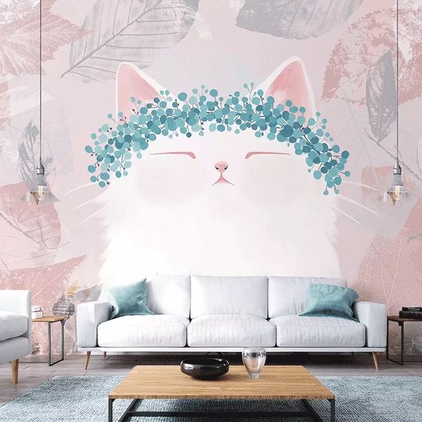 Custom Any Size 3d Photo Wallpaper Cute Cartoon Cat Murals