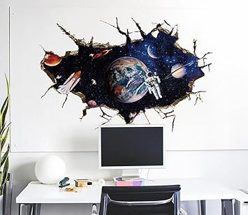 Amazon Com Oberora Astronaut Printed 3d Wall Stickers Murals