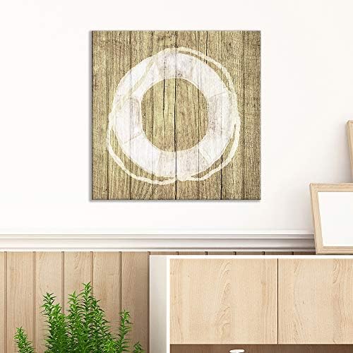 Wooden Background Lifebuoy Line Drawing For Living Room Canvas