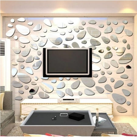 Costyle Pebble Shape Mirror Wall Stickers For Living Room Tv