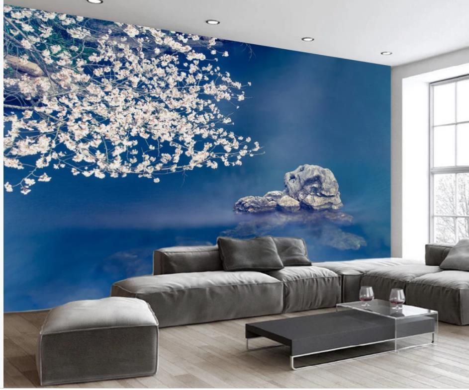 Wallpapers For Living Room New Chinese Style White Flower Branch