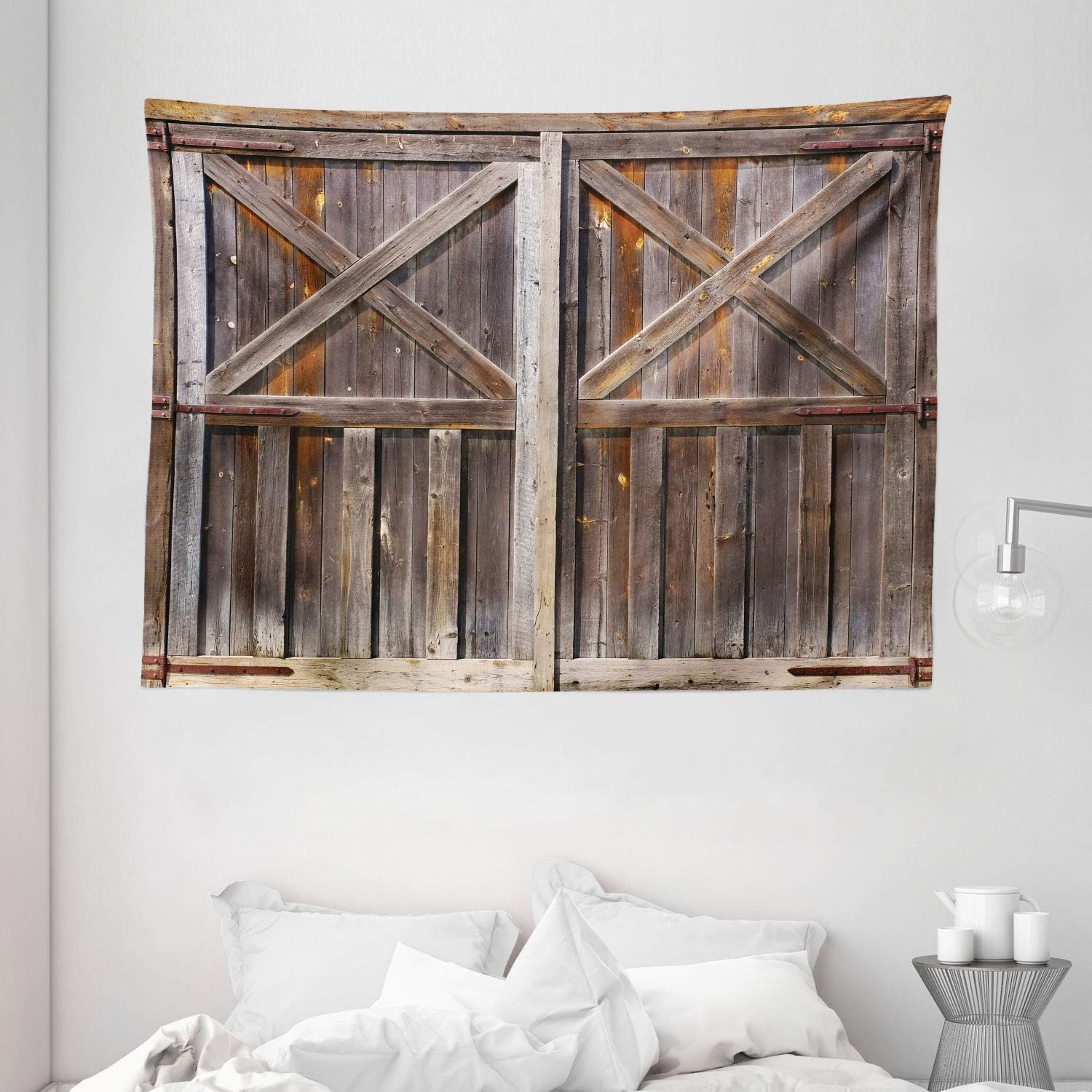 Amazon Com Ambesonne Rustic Tapestry Old Wooden Barn Door Of