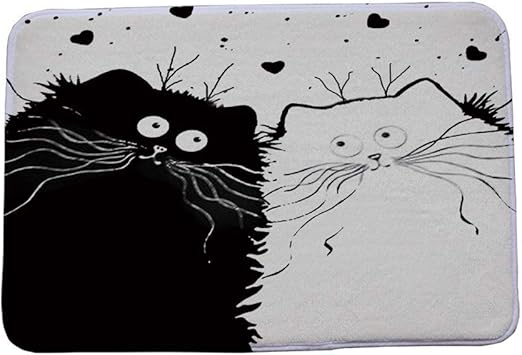 Miracille Modern Cartoon Black White Cat Printed Door Mats Anti