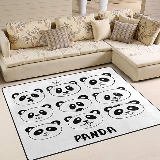 Amazon Com Alaza Black White Cartoon Panda Face Emoji Area Rug