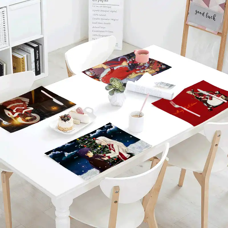 Cartoon Christmas Napkin Linen Beauty Elk Pattern Tree Meal Family