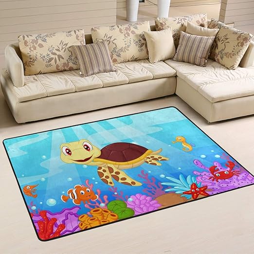 Amazon Com Wihve Area Rug Cartoon Cute Sea Turtle Colorful Fish