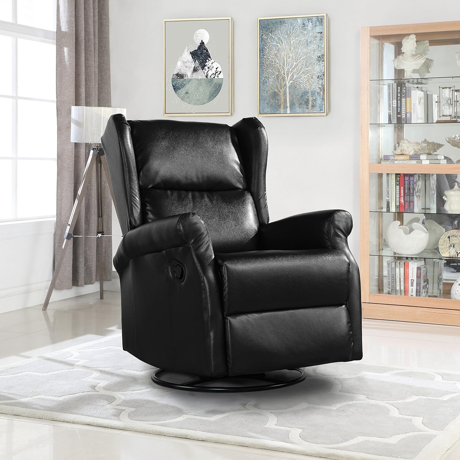 Rocker Recliner Chair Faux Leather Swivel Glider Reclining